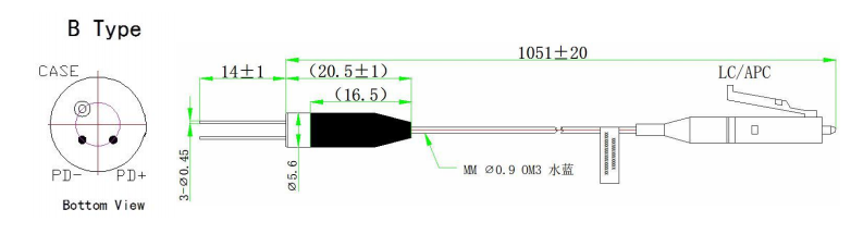 InGaAs Pigtailed Photodiodes koblet multimode fiber, med en kjernediameter på 50 µm eller 62,5 µm valgbar, og et deteksjonsbølgelengdeområde på 900-1700 nm.